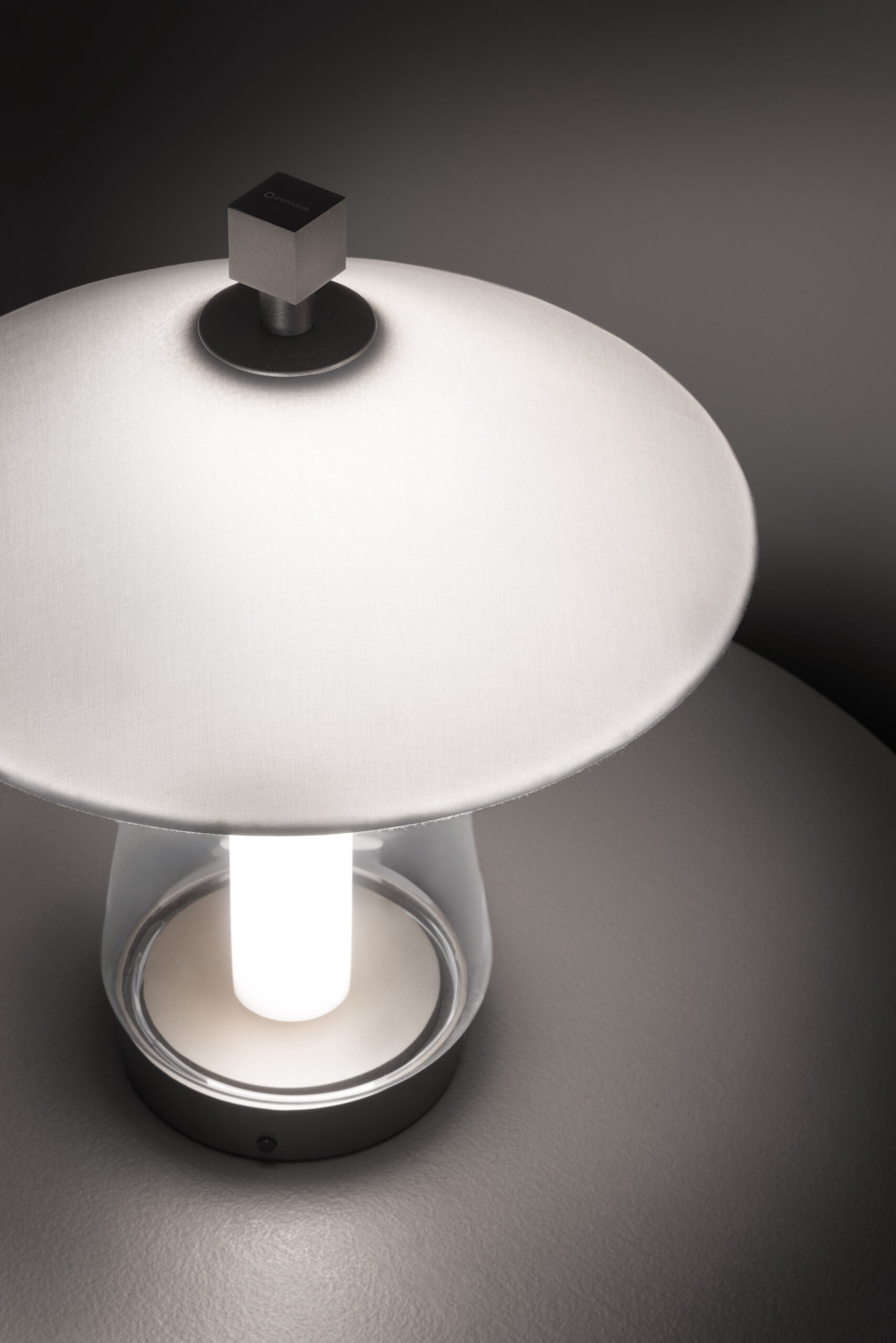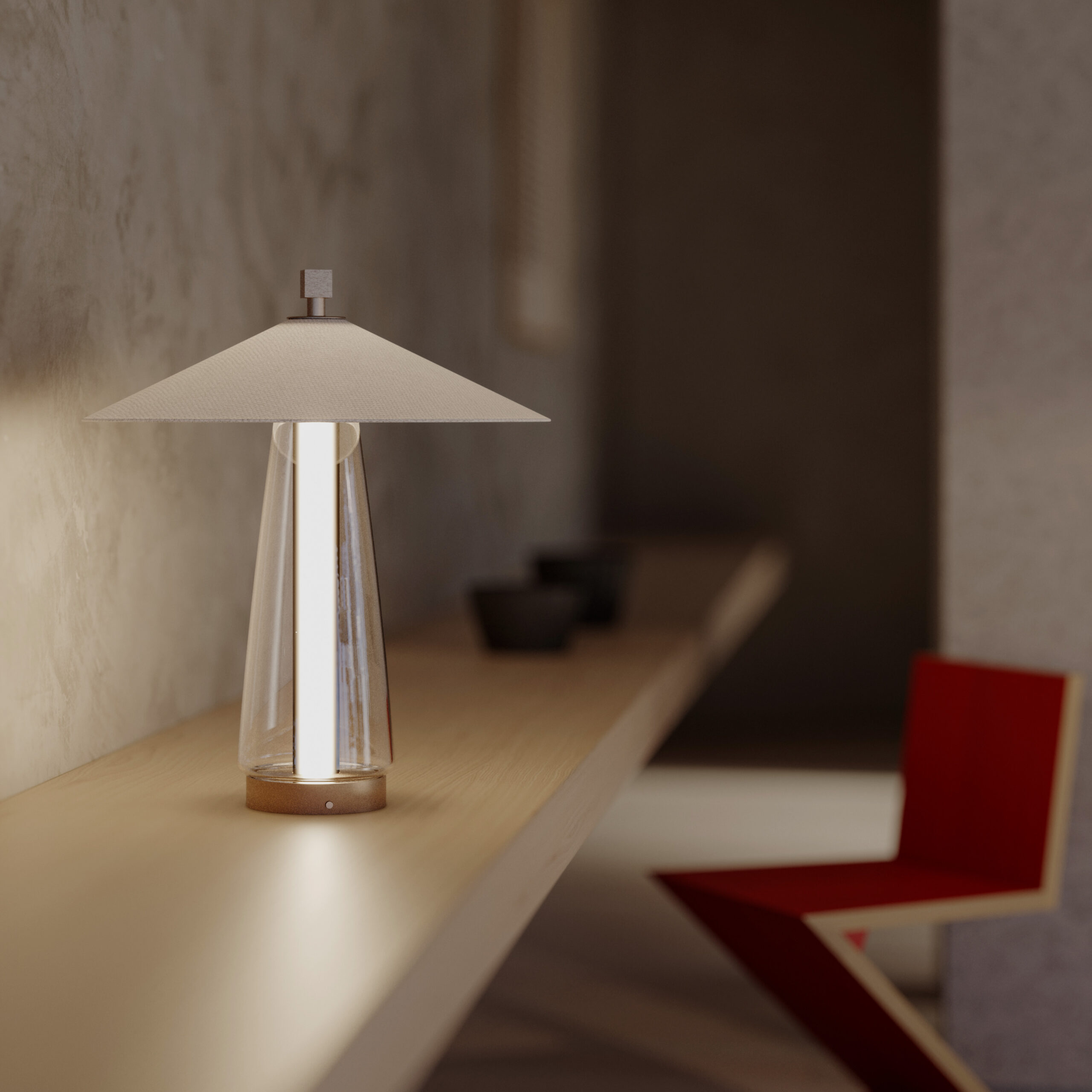A product range characterised by a clean and linear form, yet with a strong personality, Asia’s lampshade is inspired by the pointed hats of Chinese rice pickers, and the material combination of fabric, glass and metal is a further key feature of the collection.