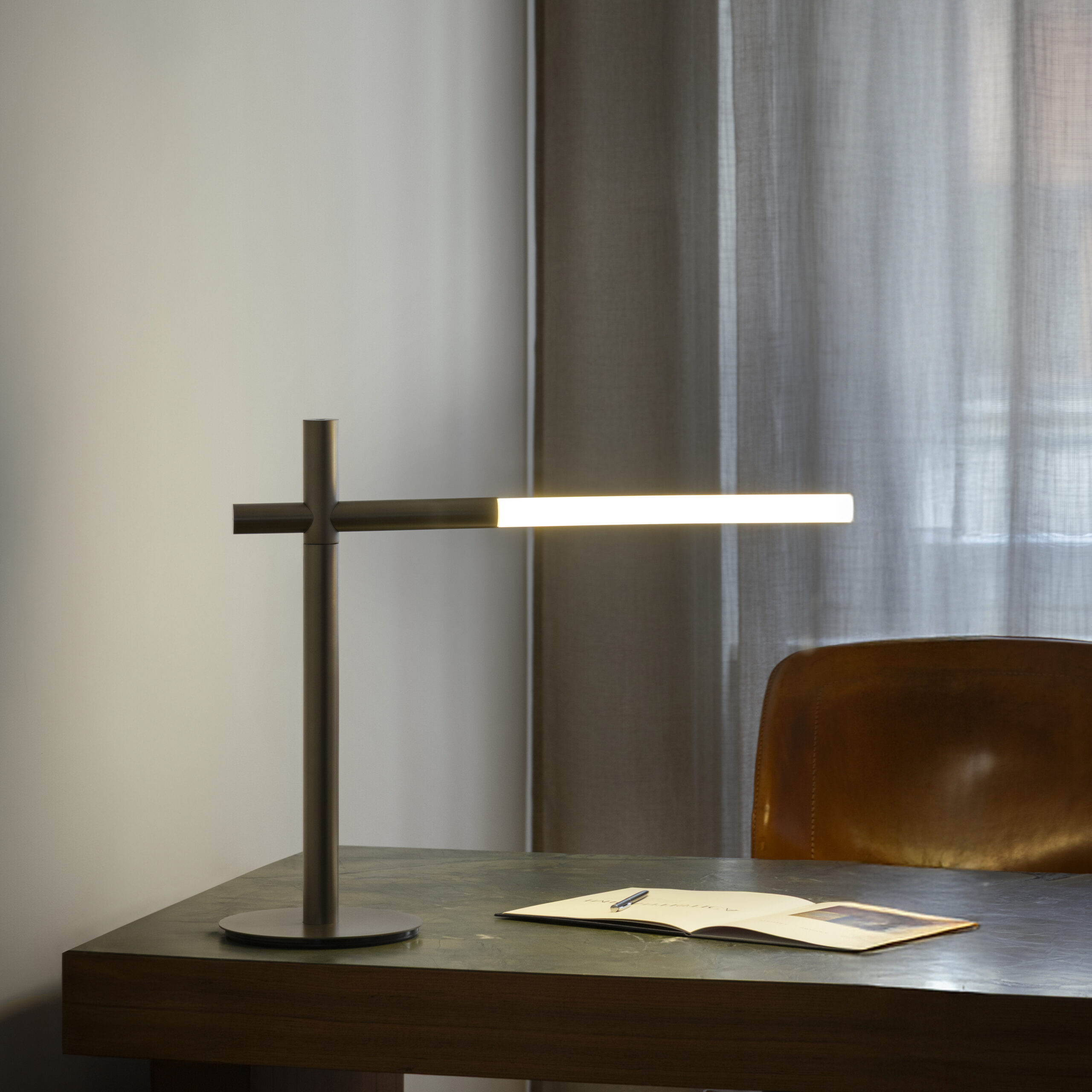 The Bianca table lamp creates a refined and elegant light point, with its light structure, suitable for illuminating desks and tables.