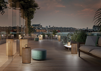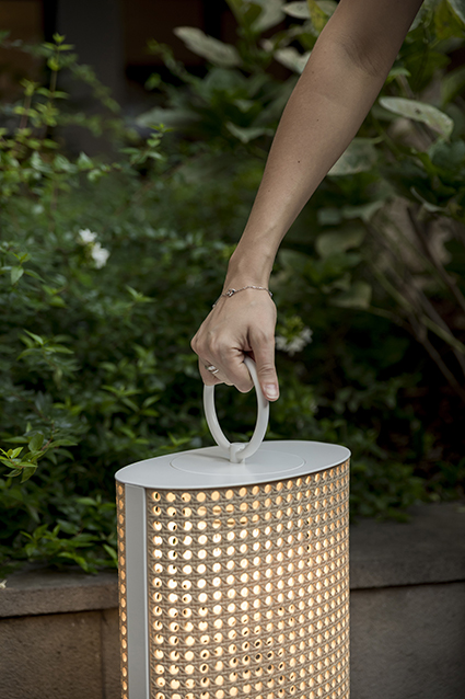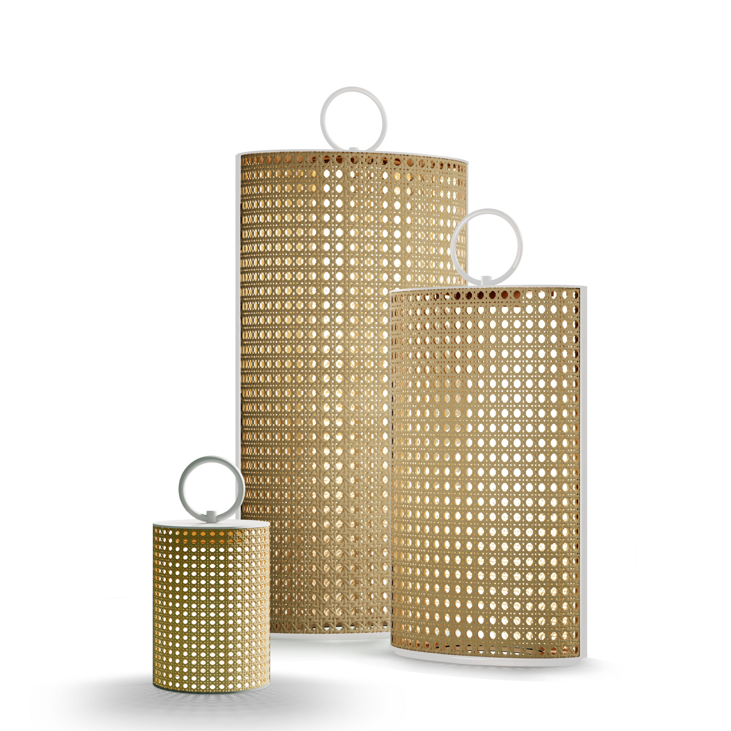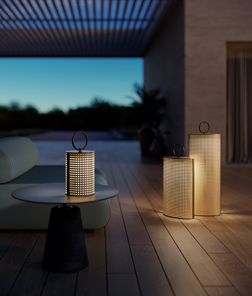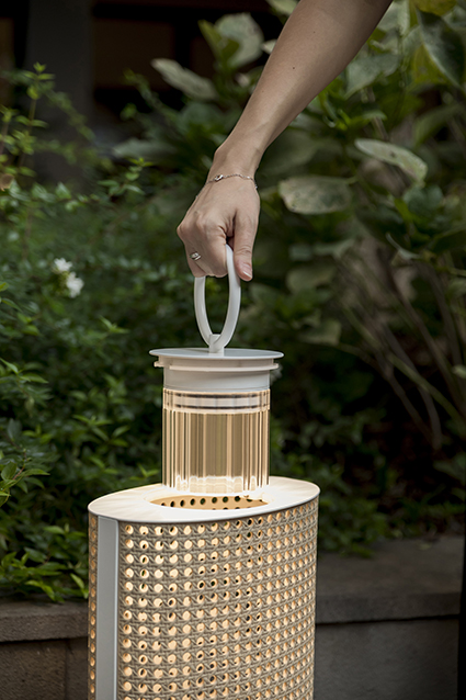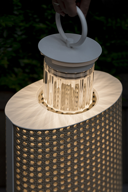 With its warm and evocative glow, Clara is a lantern with immense emotional appeal, enhanced by the innovative technology employed. The diffuser is crafted from waterproof, UV-treated resin with a Vienna straw effect.