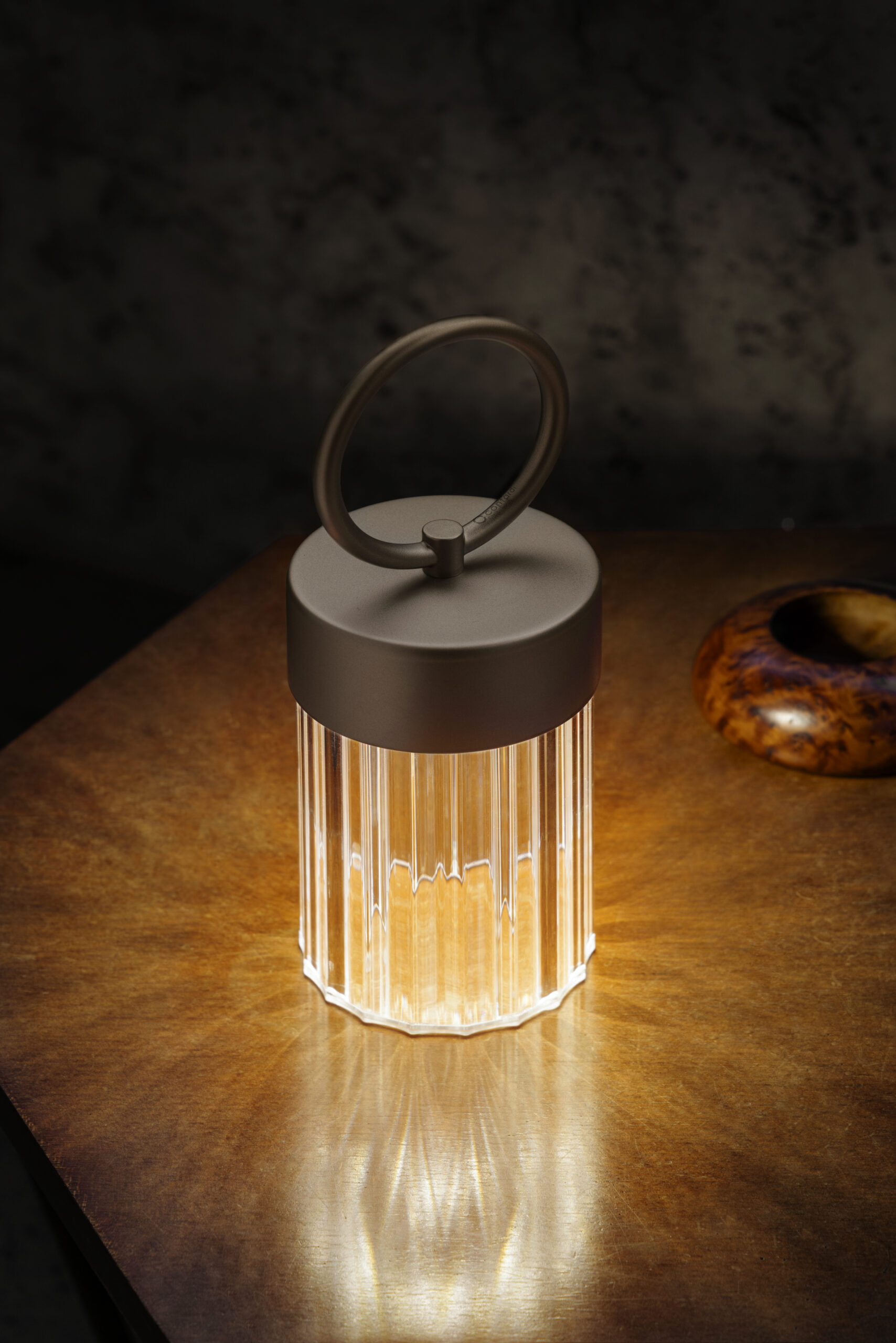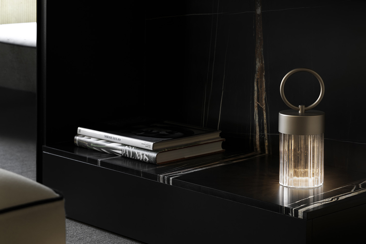 Compact and rechargeable, Claretta delivers a soft, enveloping glow through its radial lighting effect, with intuitive on/off control activated by a simple rotation.