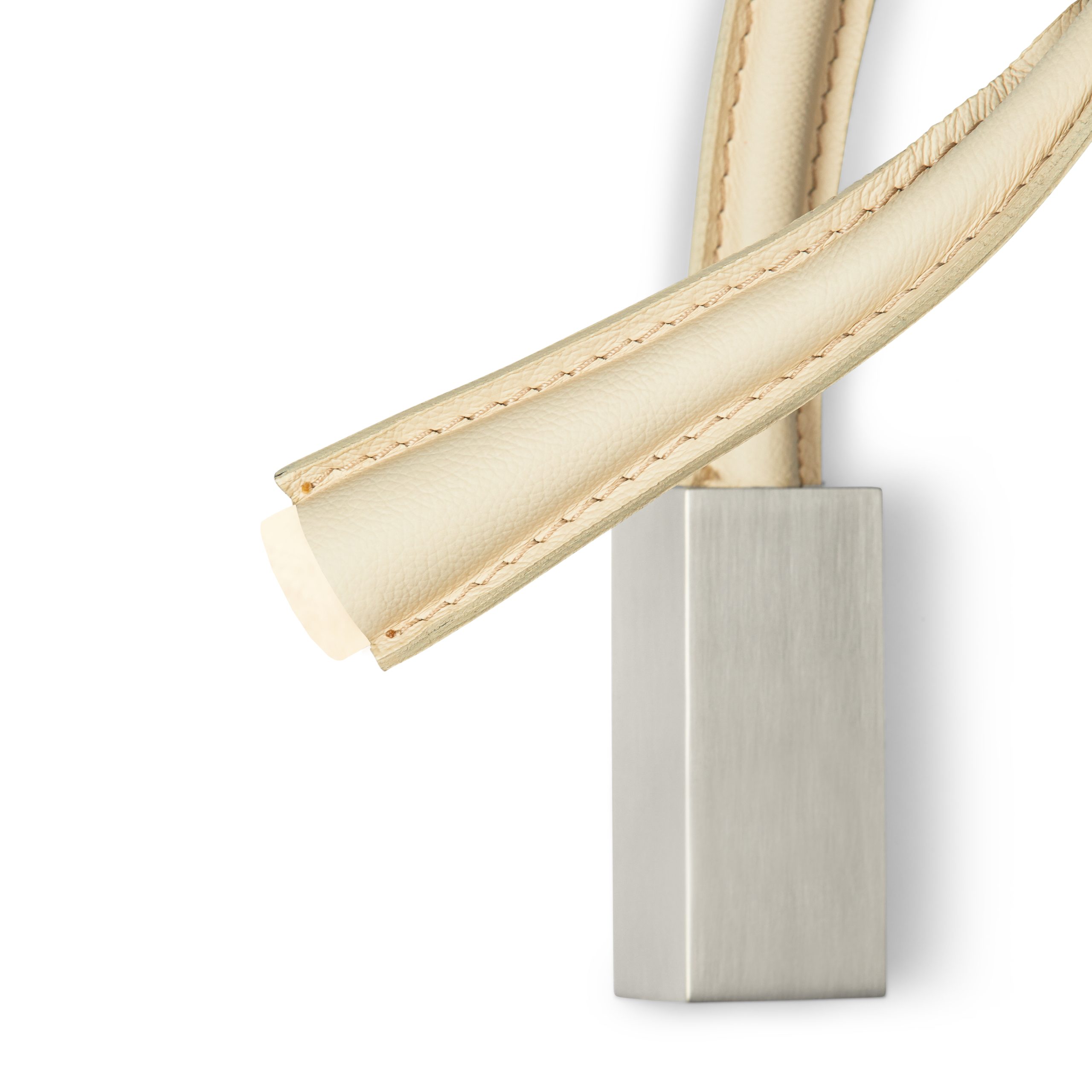 Flexiled, a historic and iconic product in Contardi's collection, is available in two variants: with a flexible arm covered in leather with double side stitching or encased in a steel mesh wrapped in a transparent sheath. It offers customization options in colors and sizes.