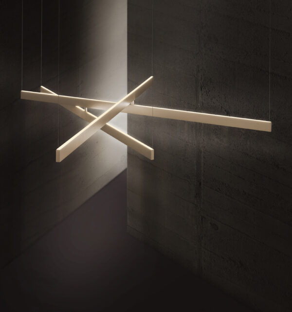 The Fly suspension collection expands into new dimension: Multipla pendant now reach up to 2400mm. Pure, light weight luminous lines that discreetly