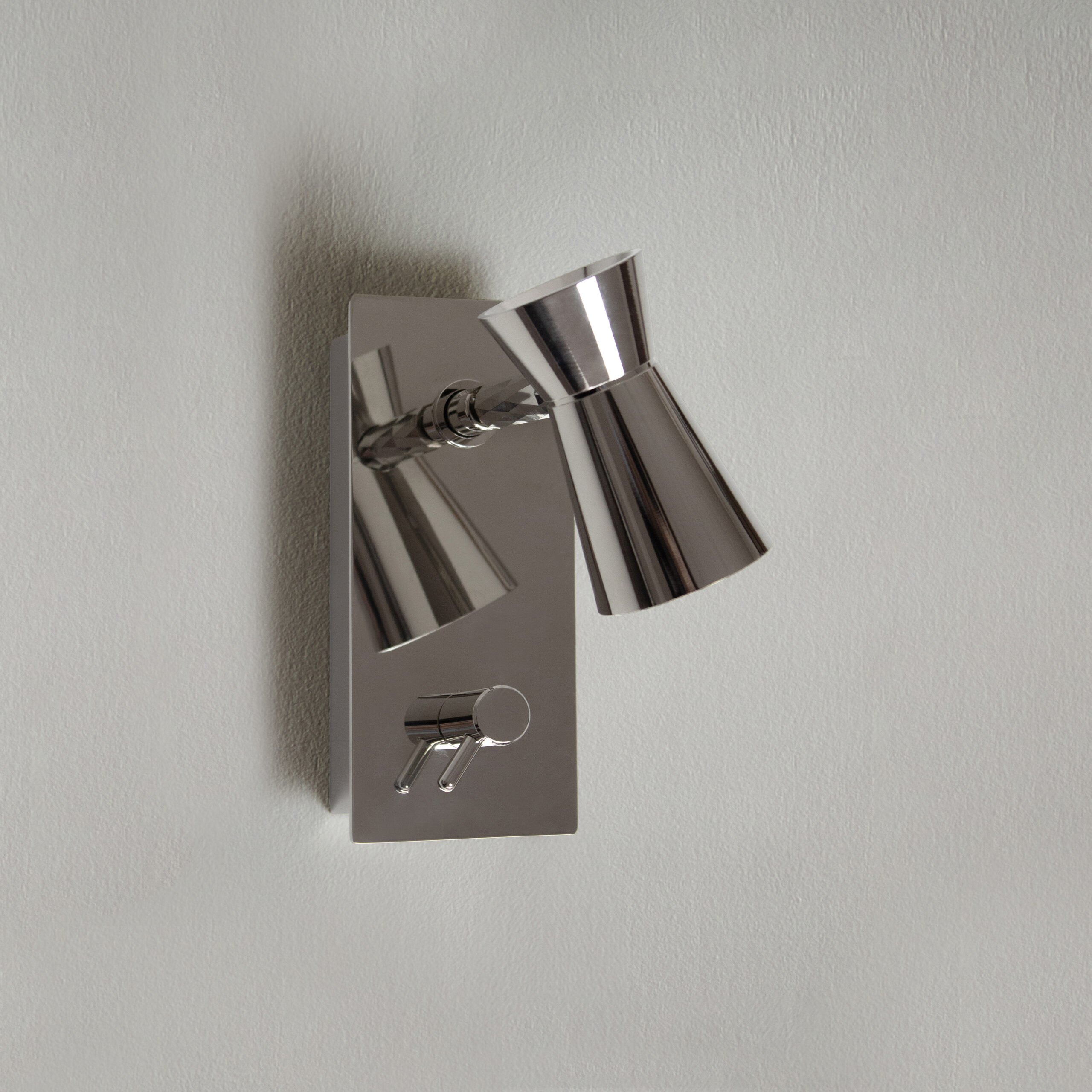 An innovative reading lamp, born from the idea of a portable and luxurious product to meet specific space and installation needs; this makes it suitable for contexts such as yachts and superyachts, historic buildings, or exclusive boutique stores. The head recalls a cocktail jigger (as the name G+T, or gin & tonic, suggests), and the arm is in brass covered with braided leather. Available in the battery version with a magnetic connection, or wall-mounted. The battery-powered model is rechargeable via the USB Type-C port (which in the wired version is used for charging smartphones or tablets).
