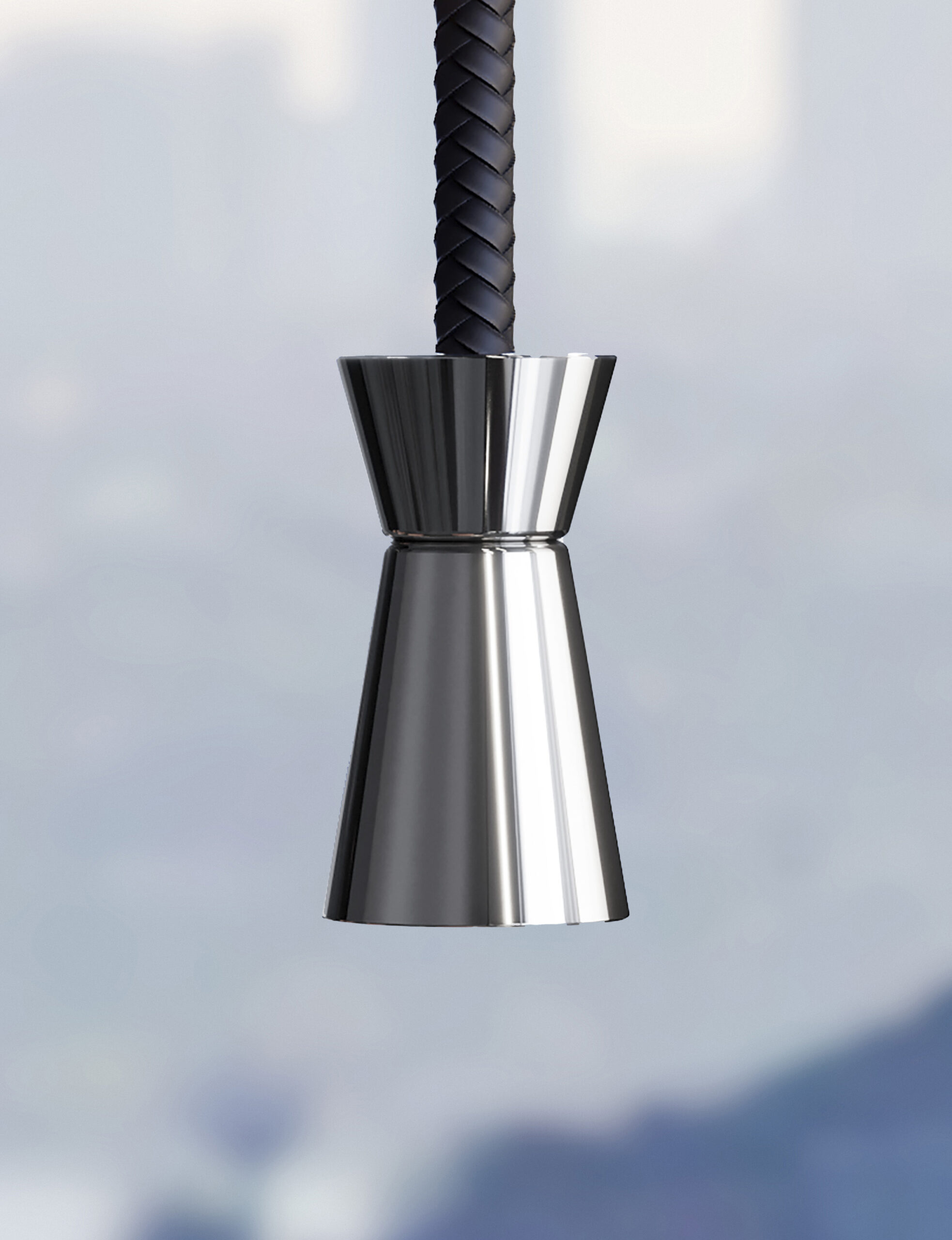 An innovative reading lamp, born from the idea of a portable and luxurious product to meet specific space and installation needs; this makes it suitable for contexts such as yachts and superyachts, historic buildings, or exclusive boutique stores. The head recalls a cocktail jigger (as the name G+T, or gin & tonic, suggests), and the arm is in brass covered with braided leather. Available in the battery version with a magnetic connection, or wall-mounted. The battery-powered model is rechargeable via the USB Type-C port (which in the wired version is used for charging smartphones or tablets).
