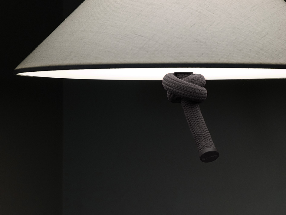 The pendant, table, and floor lamps, covered with rope and topped with white lampshades, celebrate a relaxed elegance. Material and light interact in perfect harmony, balancing craftsmanship with a contemporary vision, all with a touch of sophisticated vintage charm.