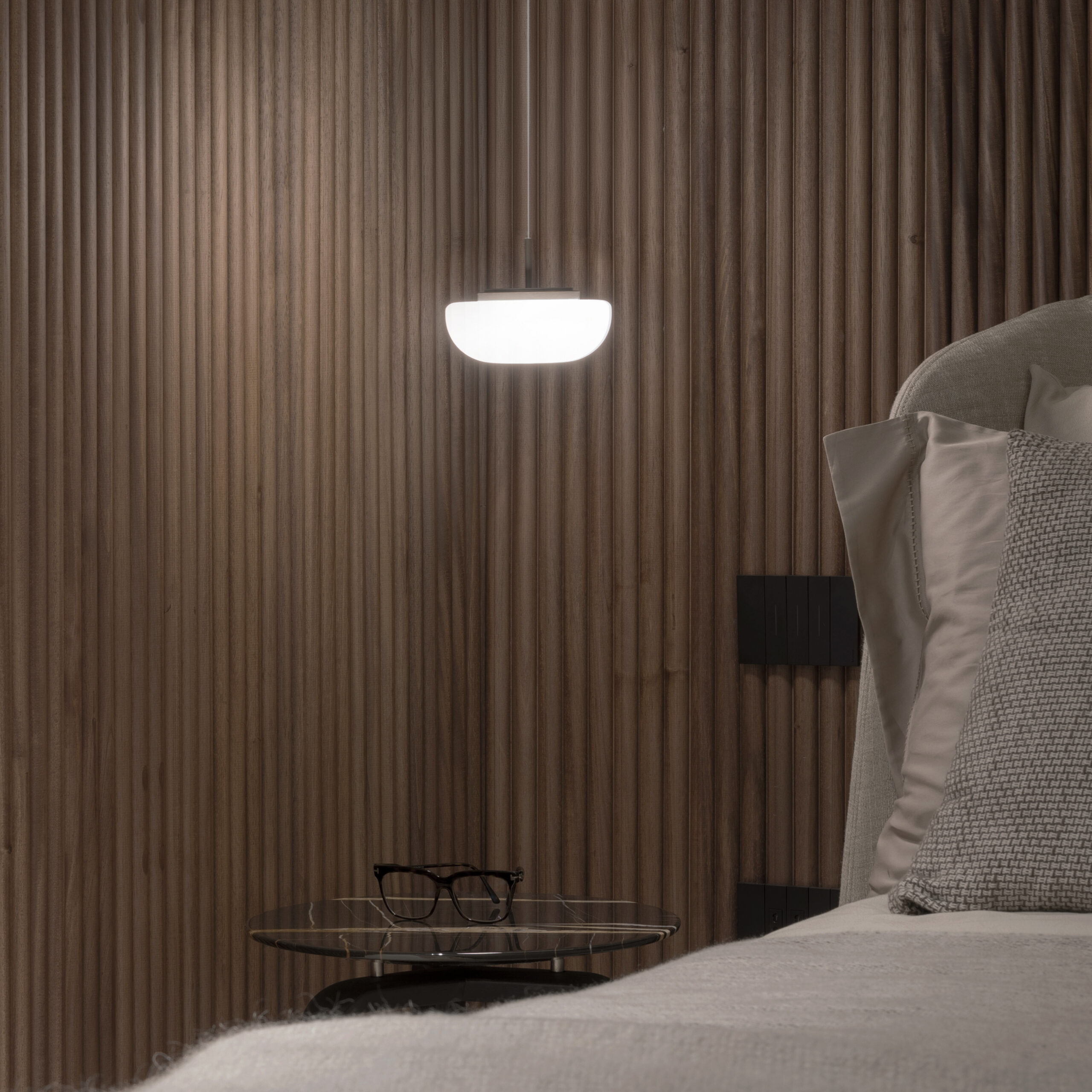 Kiki is a modular product available in wall, table and suspension versions. Thanks to the tone-on-tone fabric cable, or to its contrast with the structure, this product allows for creative compositions on walls and in the pendant version scenographic clusters.