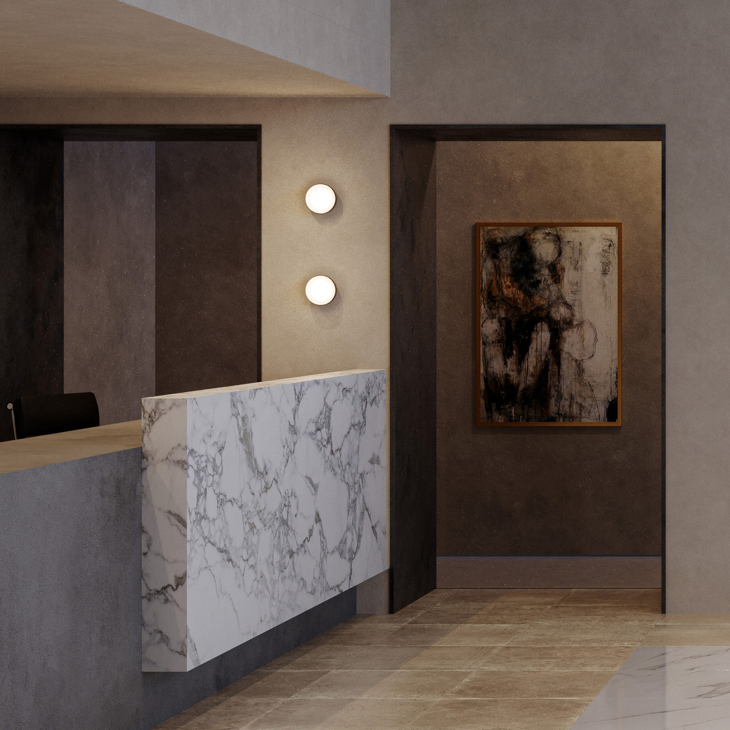 The wall version, with IP44 protection is available in champagne, brushed bronze-nickel, and anthracite finishes.