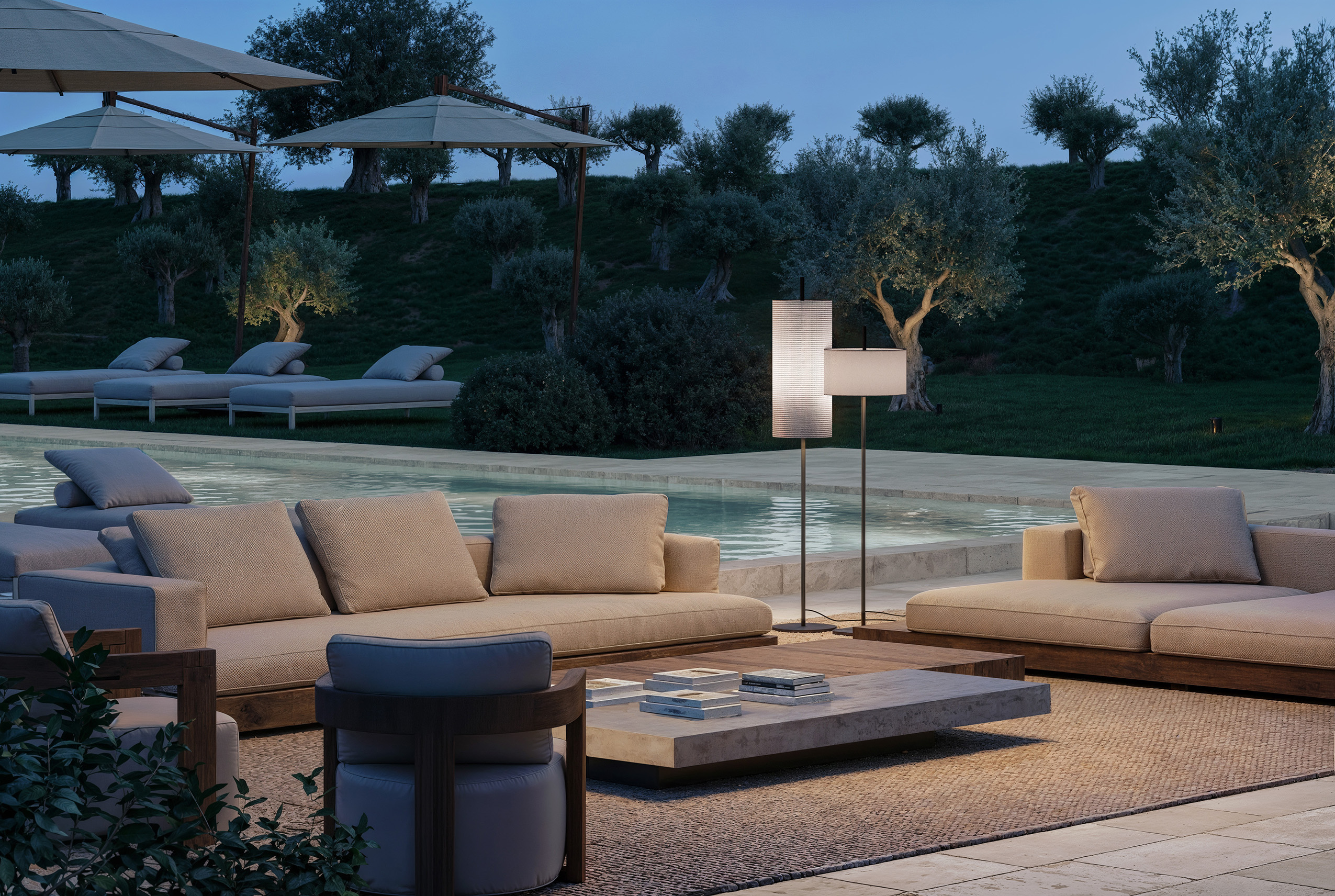 Its clean lines and delicate colour palette engage in a dialogue with the natural environment, making the collection suitable for a wide range of outdoor contexts: ideal for poolside projects, terraces, and outdoor spaces in hospitality settings, as well as more rustic environments such as Mediterranean masserie.