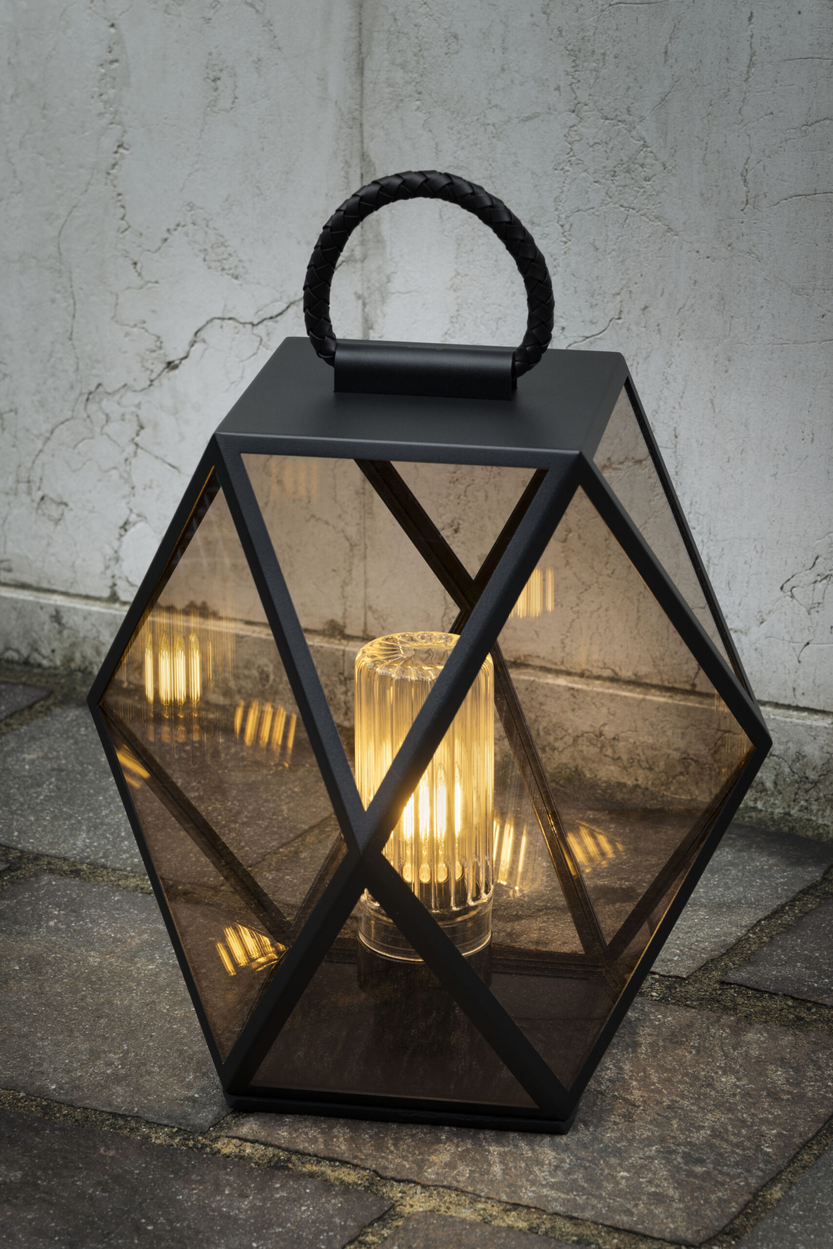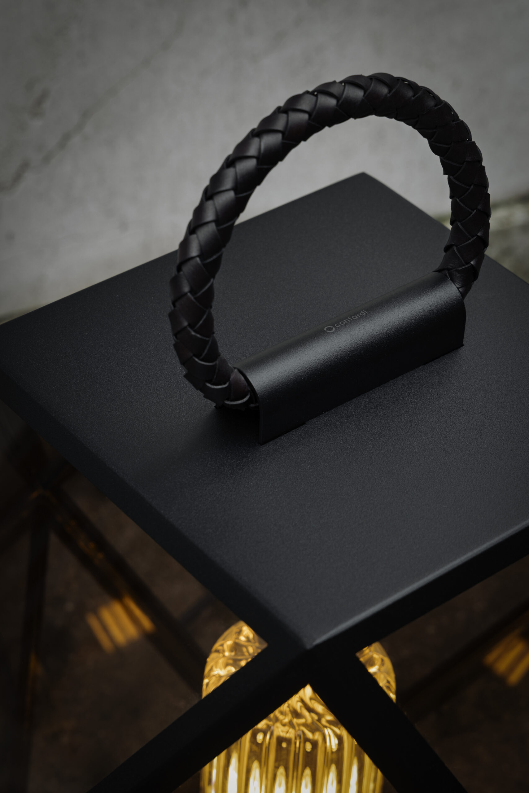 The metal structure of Muse—now available in four new finishes: black, bronze, terracotta, and a refined cream color—is enhanced by a leather handle that allows the lamp to be easily moved outdoors as well as indoors: placed on the floor, on a table, by a pool, or to illuminate the deck of a boat.
