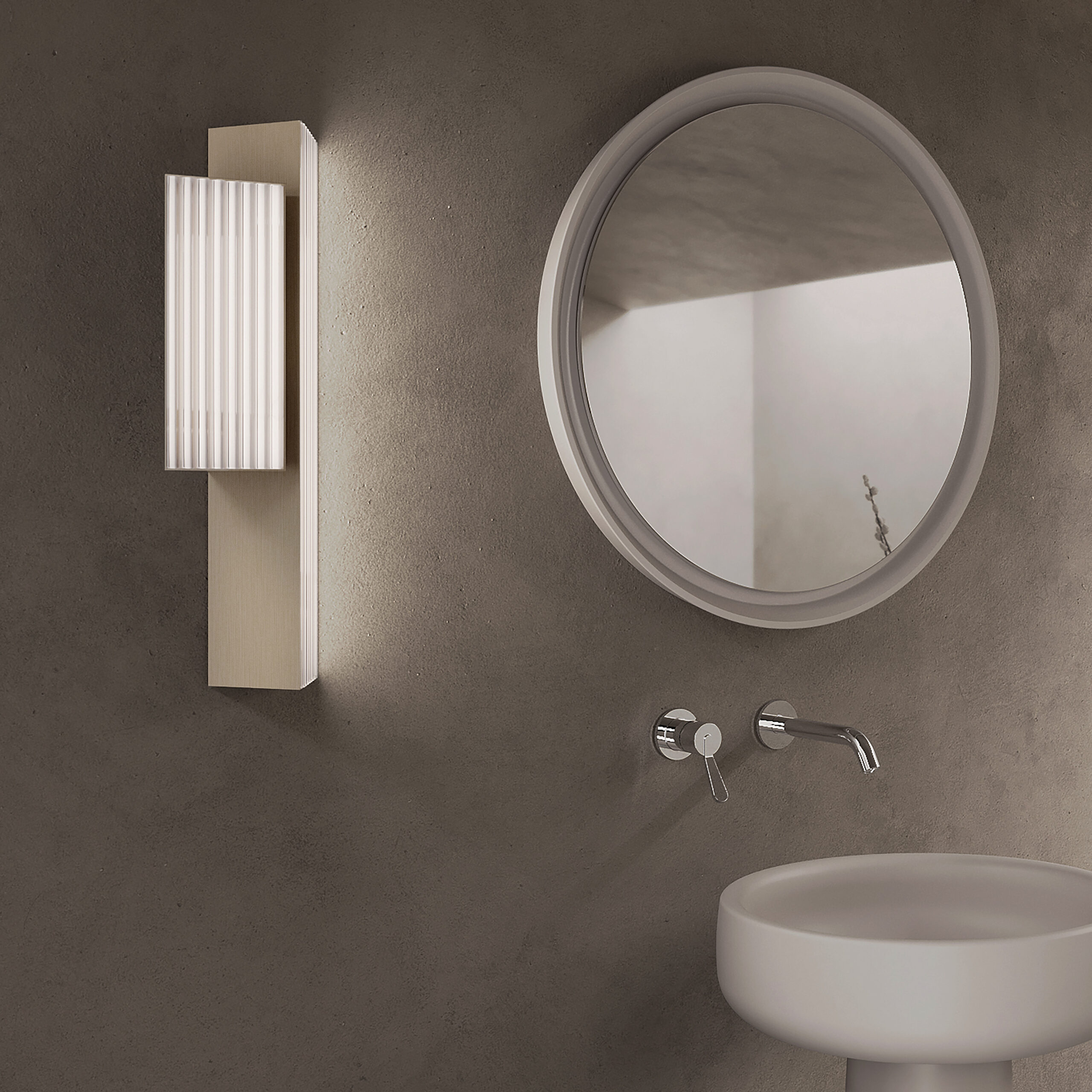 Like the other lamps in the Stick collection, the Stick ap double lamp is available in satin golden nickel and brushed bronze-nickel finishes.